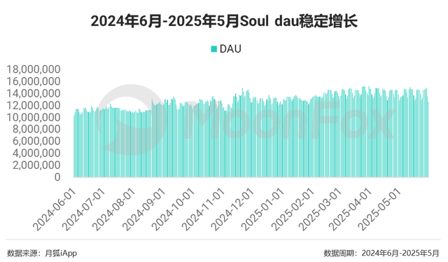 根据月狐数据,相比去年同期,soul每日活跃从1000万已经增长到1300万。